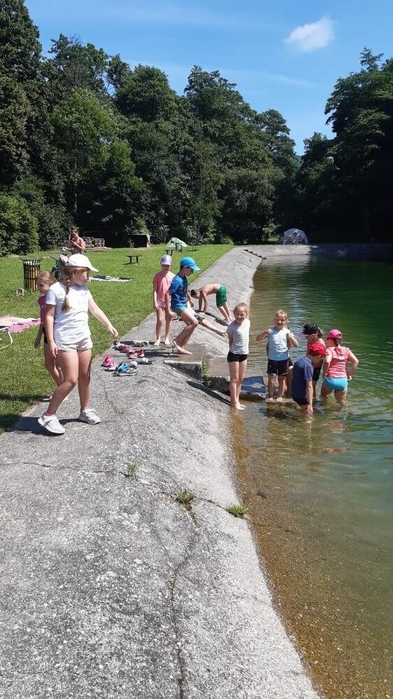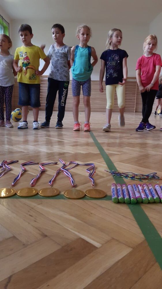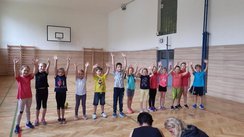 V pondělí to byly turnaje v přehazované, míčových hrách a také aerobik. V úterý následoval plážový volejbal (přehazovaná), sportovní hry a kolektivní hry (spolupráce ve hře). Středa patřila plavání, dovádění ve vodě a cvičení na průlezkách. Čtvrtek byl zasvěcen túře lesem do Žlebu a hrám při chůzi a v pátek se konal závěrečný turnaj, po němž přišlo vyhodnocení, odměny a medaile… Během jednoho týdne si děti procvičily celé tělo, zlepšily se v manipulaci s míčem, otužovaly se, navázaly nová přátelství a hlavně si to užily. Velké díky patří trenérkám Michaele Kořínkové a Michaele Horákové. Byly úžasné asistentky a pomocnice.