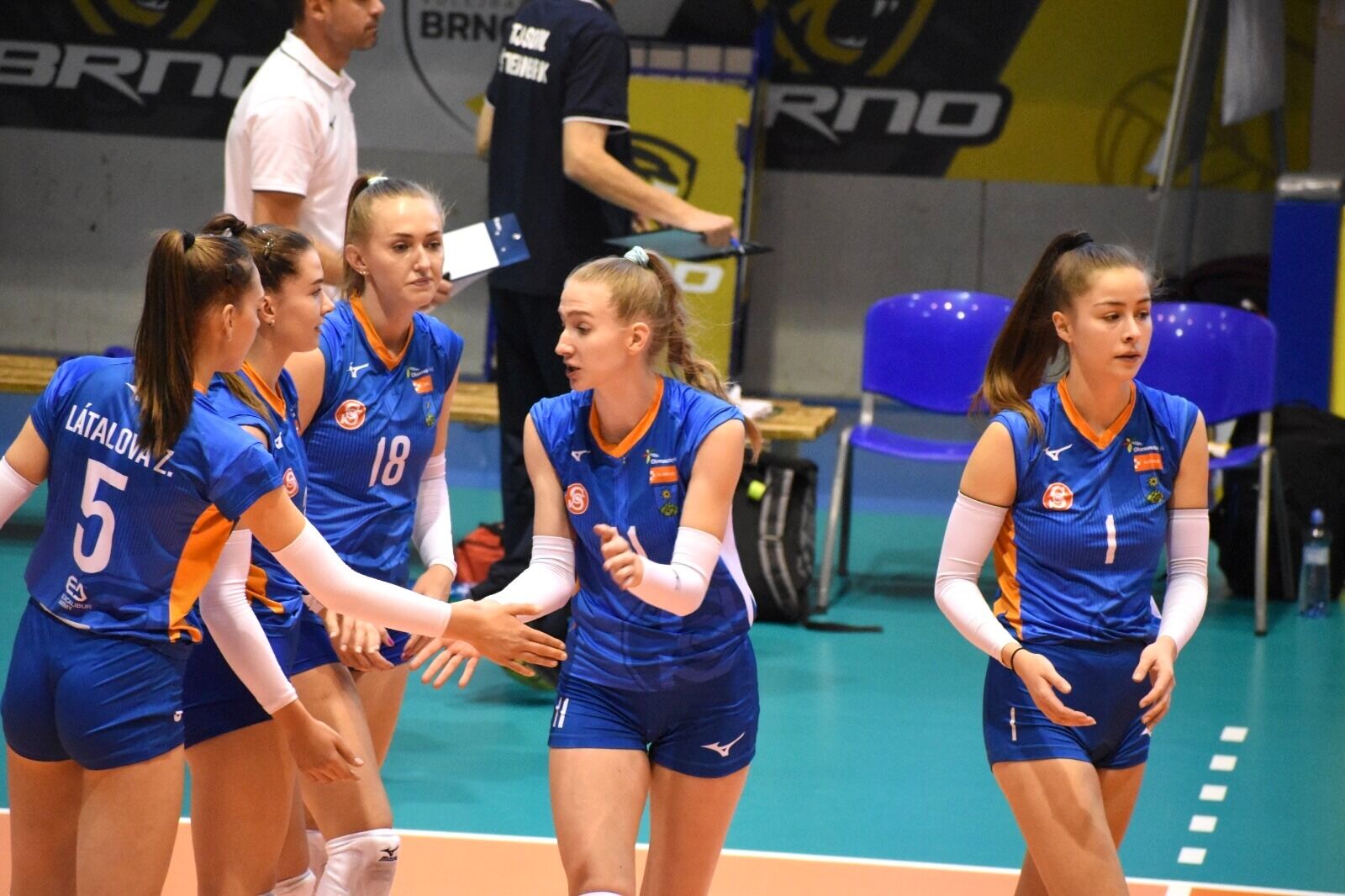 Brno: Nováková, Pluhařová, Podhrázká, Mikysková, Komárková, Širůčková, libero Chevalierová. Střídaly: Faltínová, Benediktová.