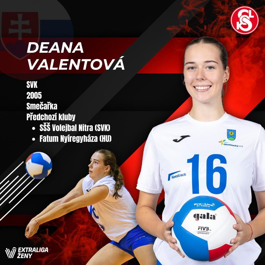 S volejbalem začínala devatenáctiletá smečařka Deana Valentová ve Spišské Nové Vsi. Hrála ze slovenskou reprezentaci do 20 let, slovenskou extraligu si vyzkoušela v Nitře a zahrála si jednu sezónu v maďarském klubu Fatum Nyíregyháza. Nyní je velkou silou útoku TJ Sokol Šternberk.