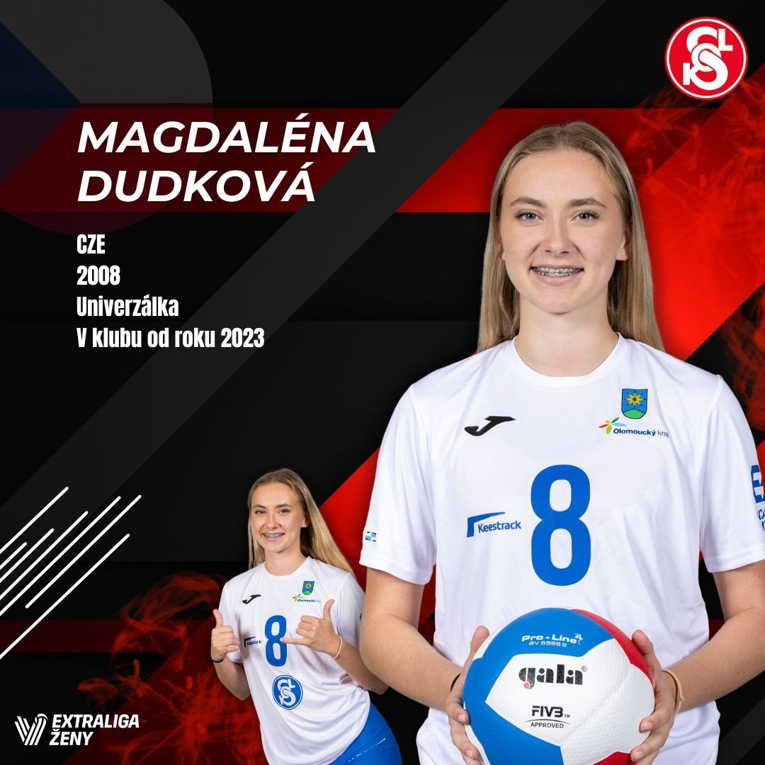Další hráčkou, kterou Vám nyní představíme je naše nejmladší hráčka, šestnáctiletá univerzálka Magdaléna Dudková. Mladá hráčka zatím sbírá v áčku zkušenosti, jinak nastupuje hlavně za všechny juniorské celky Šternberka U22, U20 i U18. Nejlepší kámošku Majky je Lera Dovhoshapko a jednou by Mája chtěla hrát v Americe. Tak ať se jí volejbalové sny splní. Mrkněte na dotazník Magdalény Dudkové.