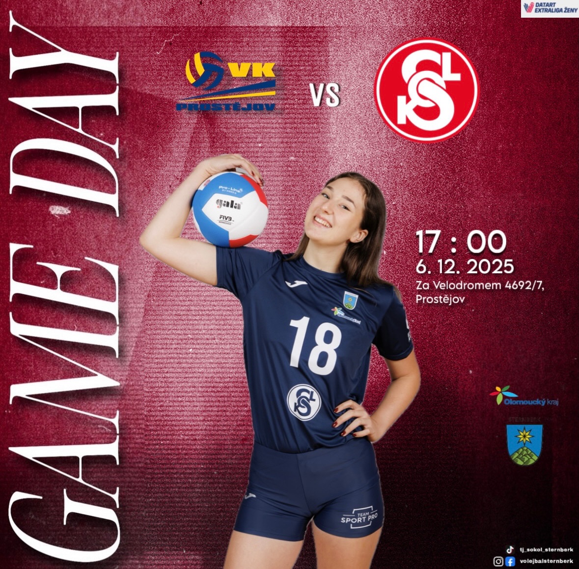 V 9. kole DATART volejbalové extraligy žen nastoupí volejbalistky Sokola Šternberk v hale úřadujícího mistra extraligy a aktuálně druhého týmu tabulky extraligy VK Prostějov.