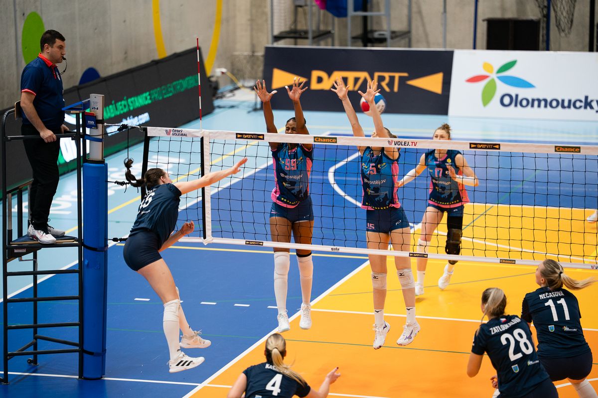 Prostějov: Deisl, Dvořáková, Bažó, Madan, Cruz, Makoňová, libero Slavíková. Střídaly: Jasečková, Zapletalová.