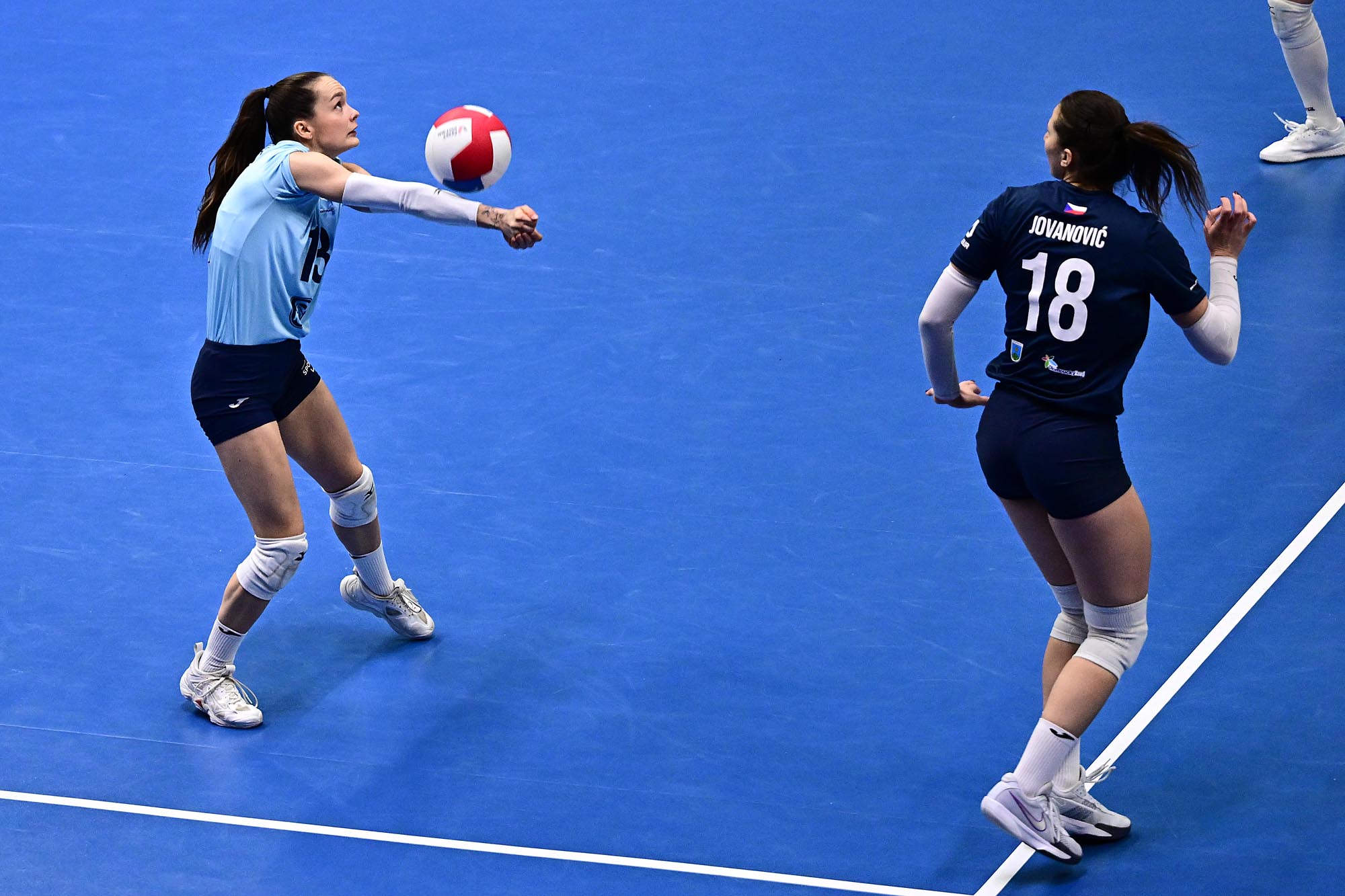 Dvakrát během prvního setu „vymrštila rotace“ za čáru určenou k podání americkou smečařku Lvic Katelyn Smith. Poprvé z toho byla dvě esa a výrazný posun skóre ze 7:10 na 12:10. Podruhé pětibodová série a rozhodující náskok 22:17. Sokolky ještě snížily esem Michaely Zatloukalové na 21:23, ale domácí Pokorná vybojovala setbol, který pražský tým napodruhé proměnil. První set vyhrály Lvice 25:22.