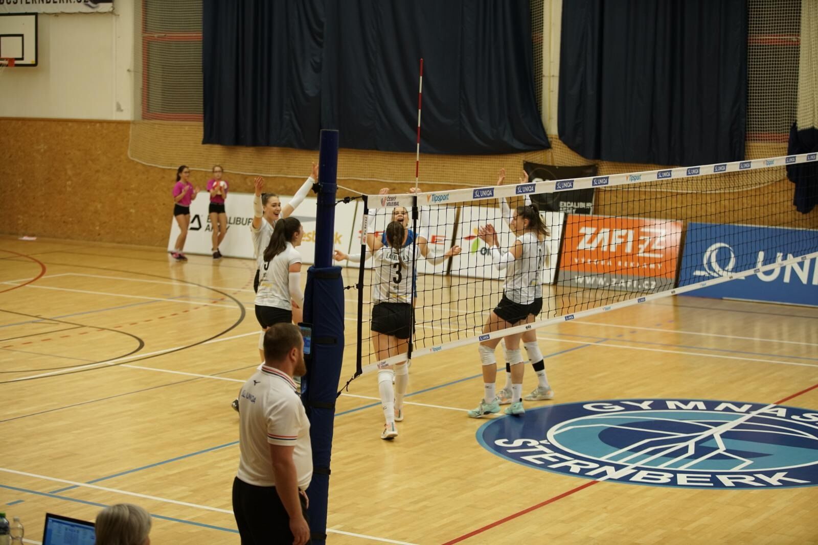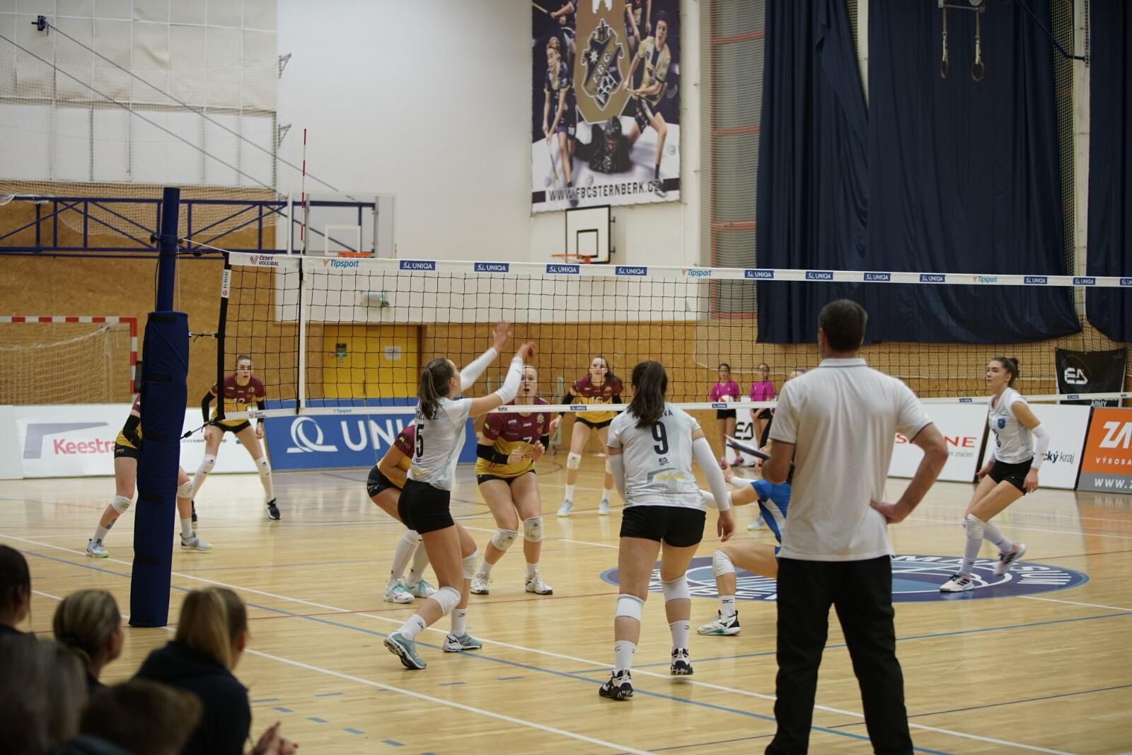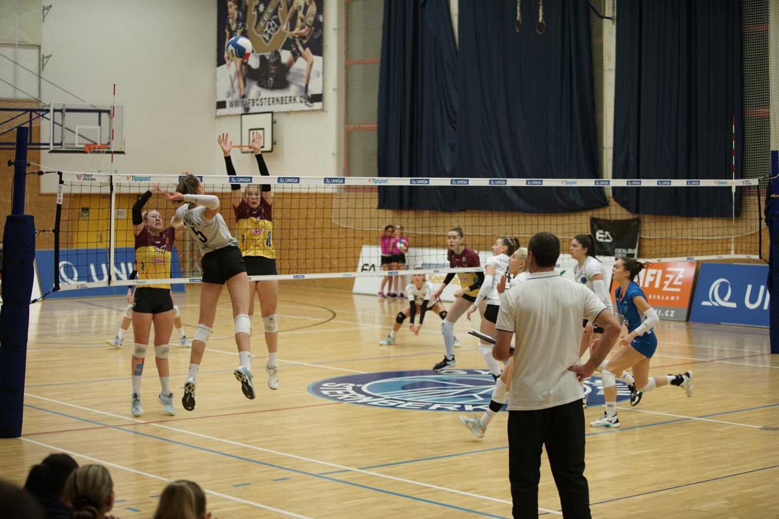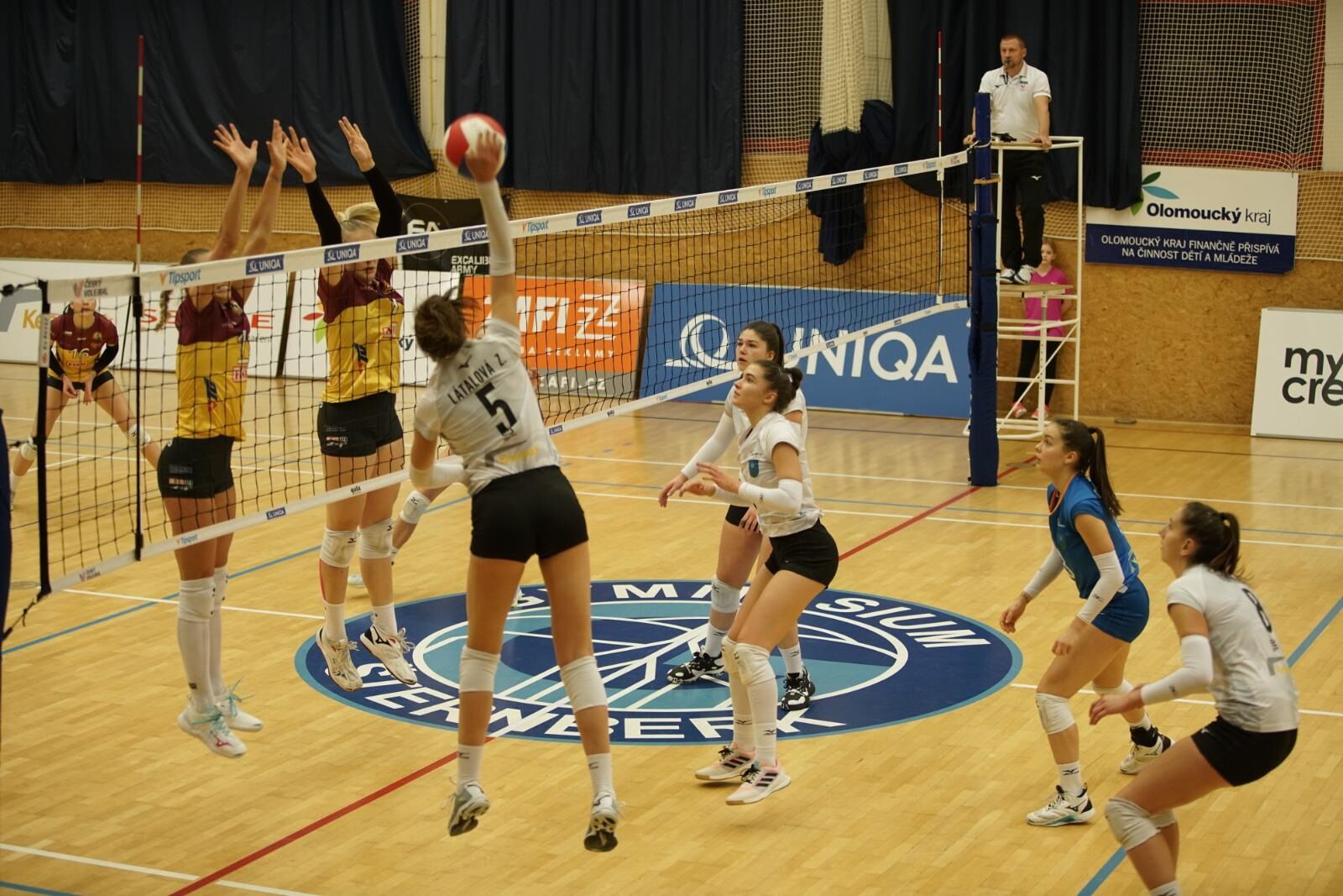V prvním setu se sice dlouho o něco lépe dařilo hostům z Prahy (3:5, 9:13), jenže za stavu 21:21 bylo vyrovnáno a až druhý setbol přinesl Olympu nejtěsnější výhru 25:23.