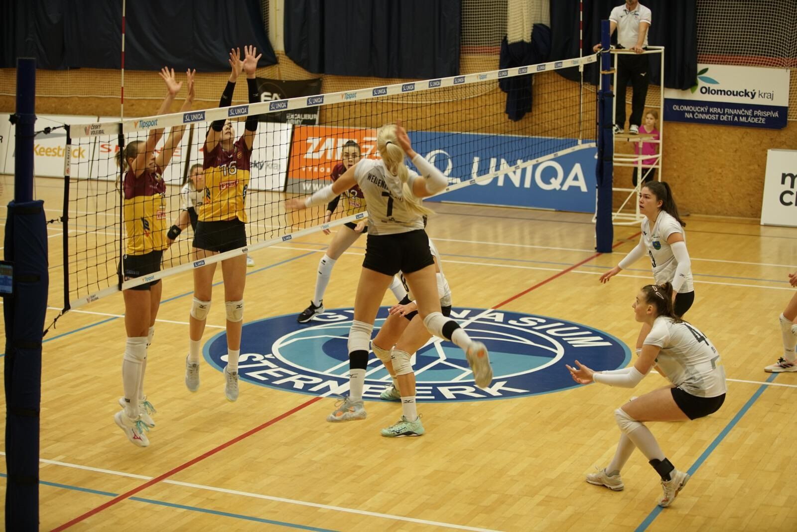 Olymp: Nicole Šmídová, Brichtová, Gajdová, Brancuská, Virtová, Šimáňová, libero Dostálová. Střídaly: Kalhousová, Kelnárová, Natálie Šmídová, Poloučková