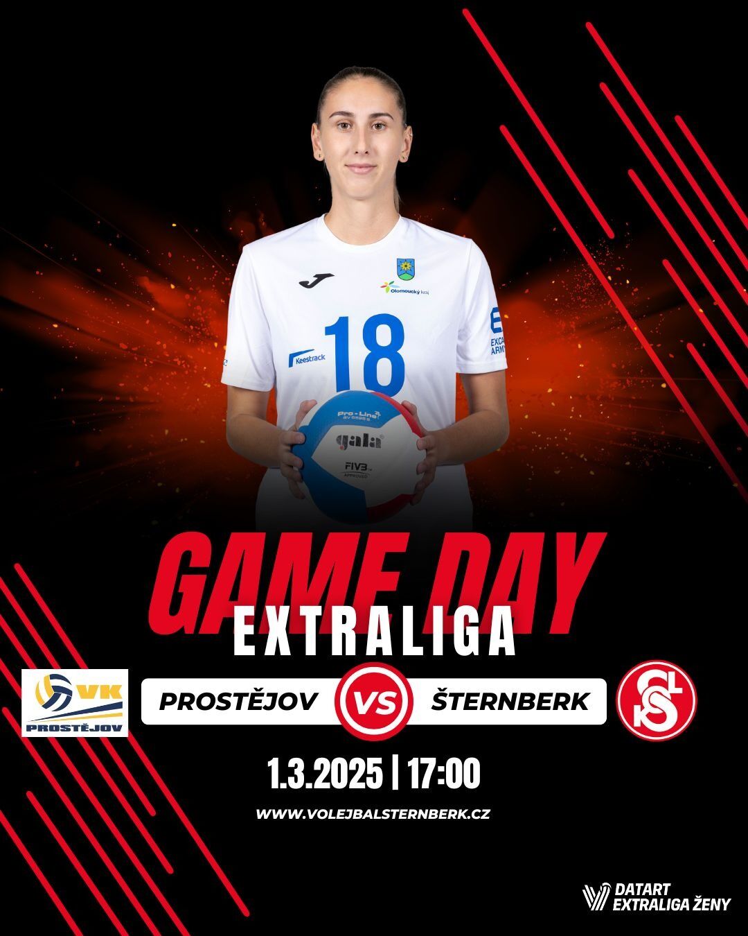 Volejbalistky TJ Sokola Šternberk hrají v sobotu 1.3. 2025 od 17 hodin na palubovce lídra soutěže VK Prostějov. Sokolky mají již jistotu, že se vyhnou baráži, protože Královo Pole je již nemůže ve dvou kolech předstihnout. Naopak Šternberk ztrácí na play-off na 8. místo Přerova 4 body a v případě výhry za dva nebo tři body by ještě zůstaly při porážce Přerova do posledního kola ve hře o play-off.